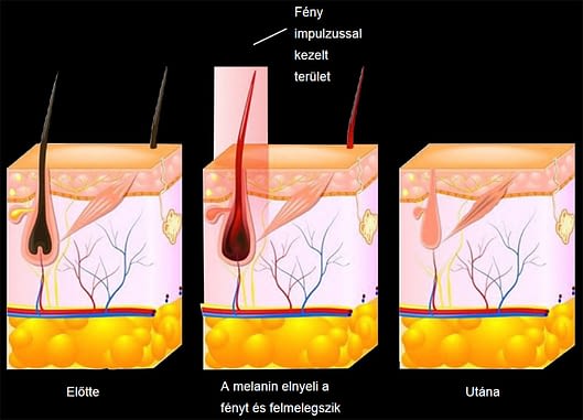 Az eljárás során a gép nagy energiájú rövid fényimpulzusokat bocsát ki, amit a szőr sötét pigmentjei elnyelnek és a szőrtüsző aljára juttatnak. Ott a fény hőenergiává alakul és 60-70 fokra melegíti a szőrtüszőket.